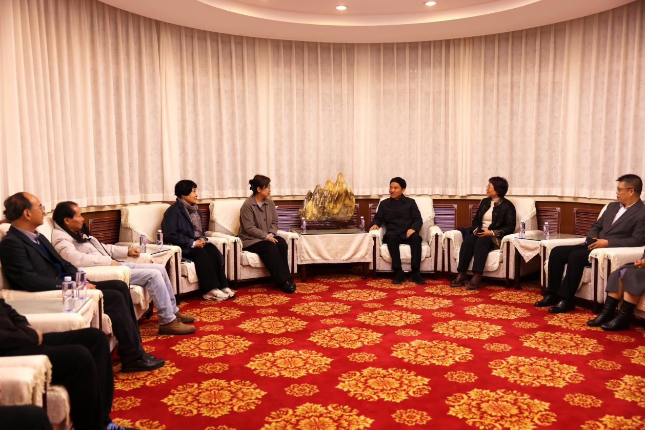 会议前夕,校长罗文波代表学校在国际文化交流中心会见与会专家学者代表。罗文波校长对各位学者的到来表示热烈欢迎,并对大家长期以来给予学校事业发展的关心与支持致以诚挚谢意。他指出,本次高端论坛是学校深入学习领会习近平文化思想丰富内涵的一项具体举措,是学习贯彻落实党的二十届四中全会精神的生动实践,希望以此次会议为契机,进一步拓展校际间深度合作,进一步加强协同与创新发展,为学科建设提升,推动人文学科内涵式发展注入新的学术动能。