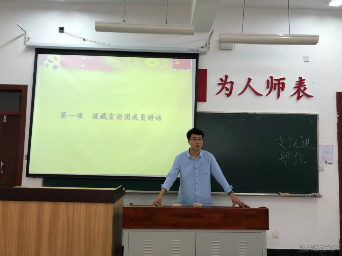 第二十一届研支团成员贾东帅结合自己的入党动机,围绕着“党员奉献”的主题与本科生第二党支部成员们分享了自己西藏支教的心得感悟。