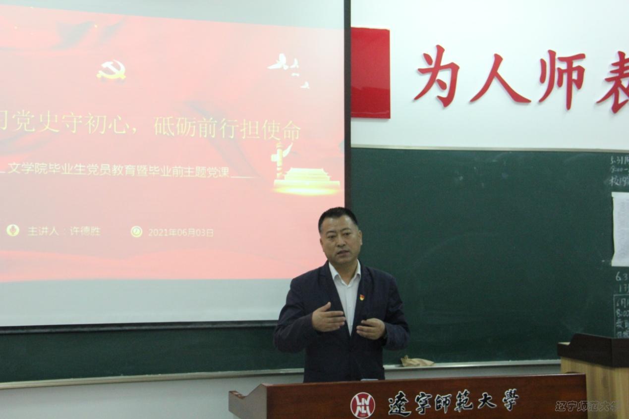 6月3日中午,炸金花 党委在二教A321教室召开毕业生党员教育活动。党委书记许德胜出席活动并为全体毕业生党员上“学习党史守初心,砥砺前行担使命”主题党课。活动由炸金花 党委组织员、2021届研究生辅导员莫再英主持。