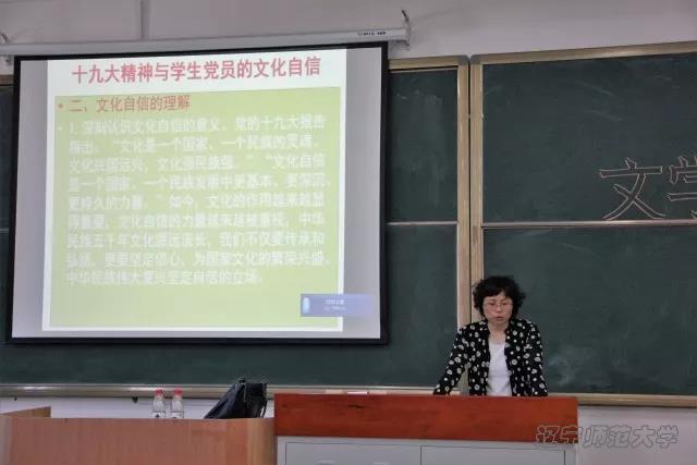 首先,洪飏老师将十九大中所提到的文化自信的内容,进行了剖析和解读。文化自信是一个民族、一个国家以及一个政党对自身文化价值的充分肯定和积极践行,而青年大学生要深刻理解文化自信的内涵和深度意义。同时,洪飏老师强调,文学是文化的承载,作为炸金花 的学生,应当争做文化的传承者。在文化课程的学习当中,更要入耳、入脑、入心。