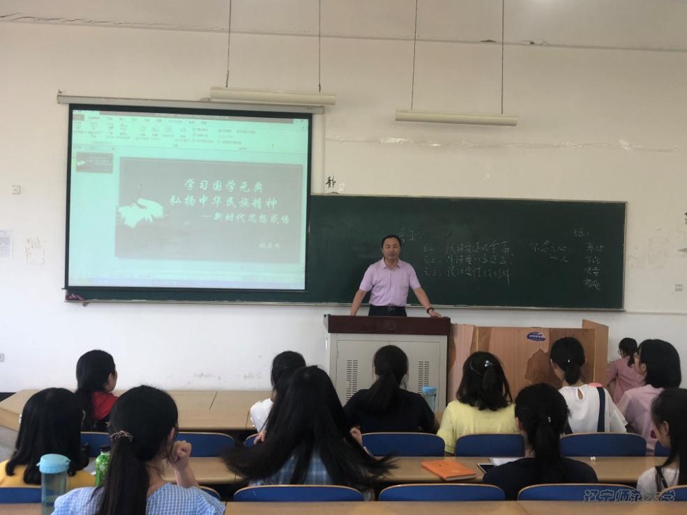 秦宏大副书记在课上重点讲授了习近平总书记在“五四”青年节和北京大学建校120周年校庆日讲话要点,以及习近平总书记出席纪念马克思诞辰200周年大会并发表重要讲话的相关知识。