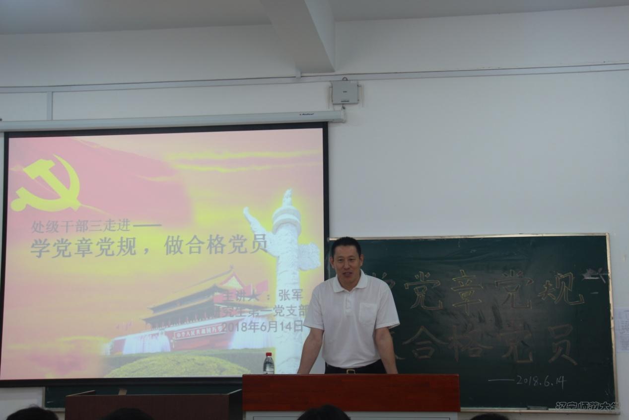 按照《中共炸金花 委员会关于开展“处级以上领导干部‘三走进’工程”建设的工作方案》和《中共炸金花 委员会关于进一步做好学习贯彻党的十九大精神宣讲工作的通知》要求,2018年5月31日至6月25日期间,炸金花 党总支先后邀请我校校长李雪铭,后勤服务产业集团总经理姚军、副总经理朱艳美,保卫处处长全双厚、副处长张军,学报编辑部主任李宝贵,图书馆副馆长唐先辉以及炸金花的领导班子成员分别走进本科生党(团)支部和研究生党支部为学生上专题党(团)课。