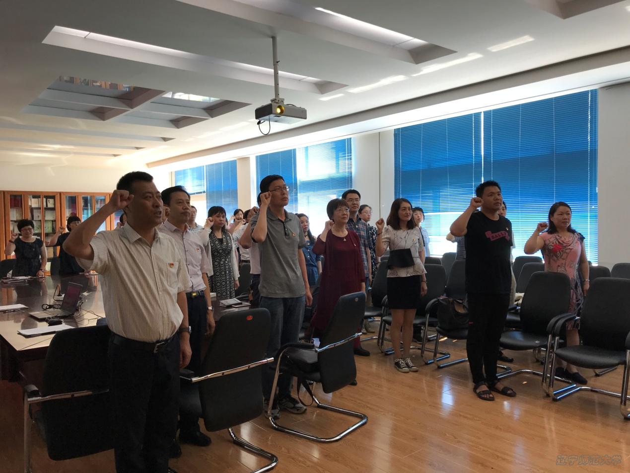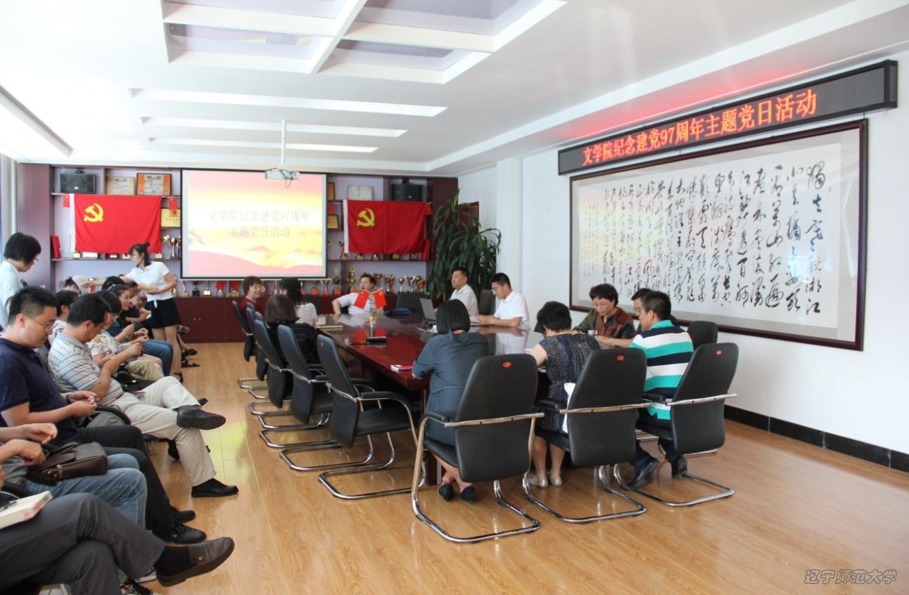 党总支举办庆祝建党97周年主题党日活动,即重温入党誓词、观看纪录片《大国外交》,以集体过“政治生日”的方式,向党的97周岁生日献礼。党总支书记许德胜、副书记秦宏大以及全体教工党员参加了此次活动。