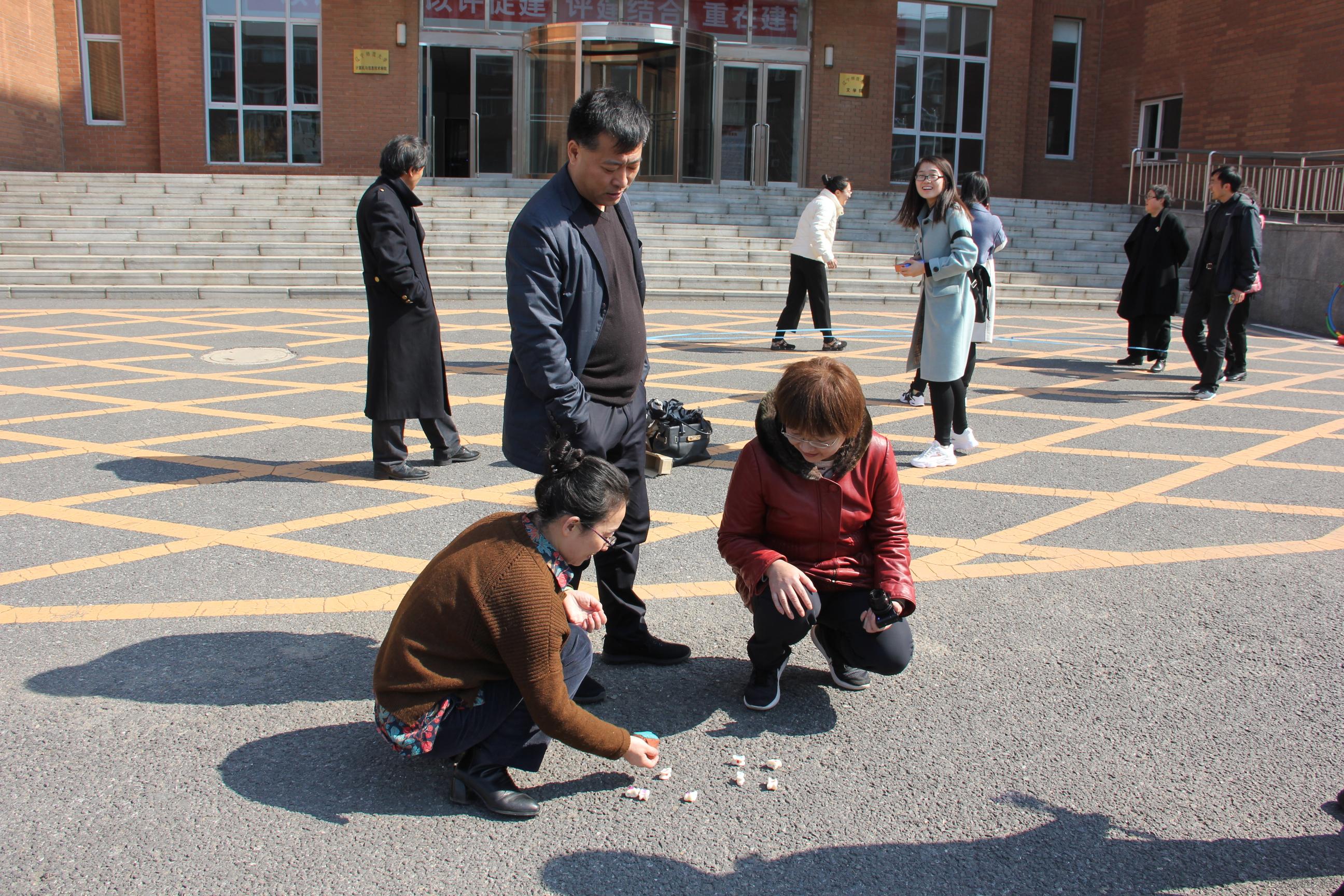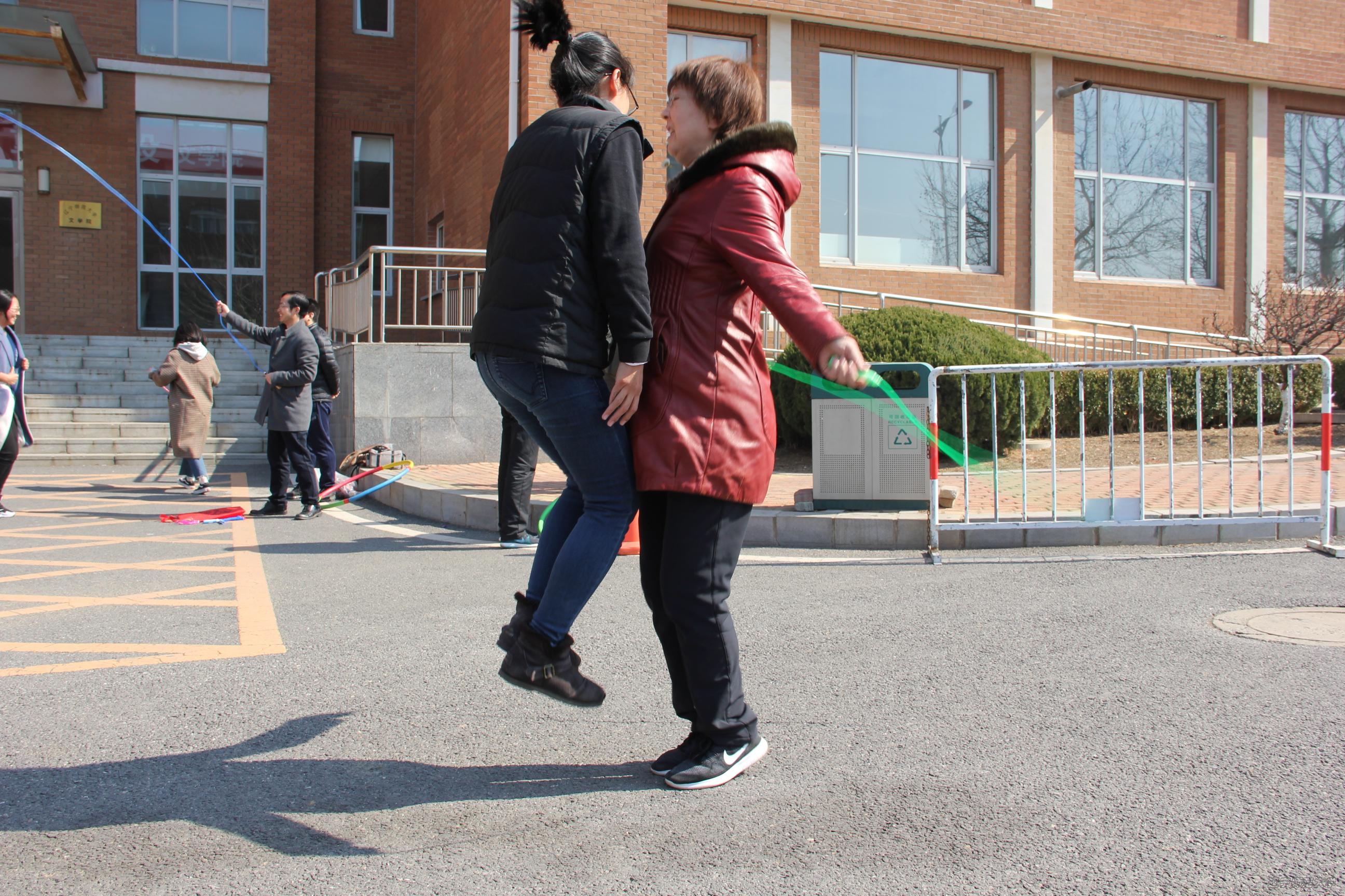 活动伊始,男教工为女教工献出了院工会定制的玫瑰花,由此拉开了序幕。紧接着,推铁环、玩嘎拉哈、跳橡皮筋、丢沙包、跳房子等活动,一下子把我们的中老年教师带到了愉快的童年,回味儿时味道,感慨成长之路,更让现在的年轻教师耳目一新,跃跃欲试,填补开心记忆。