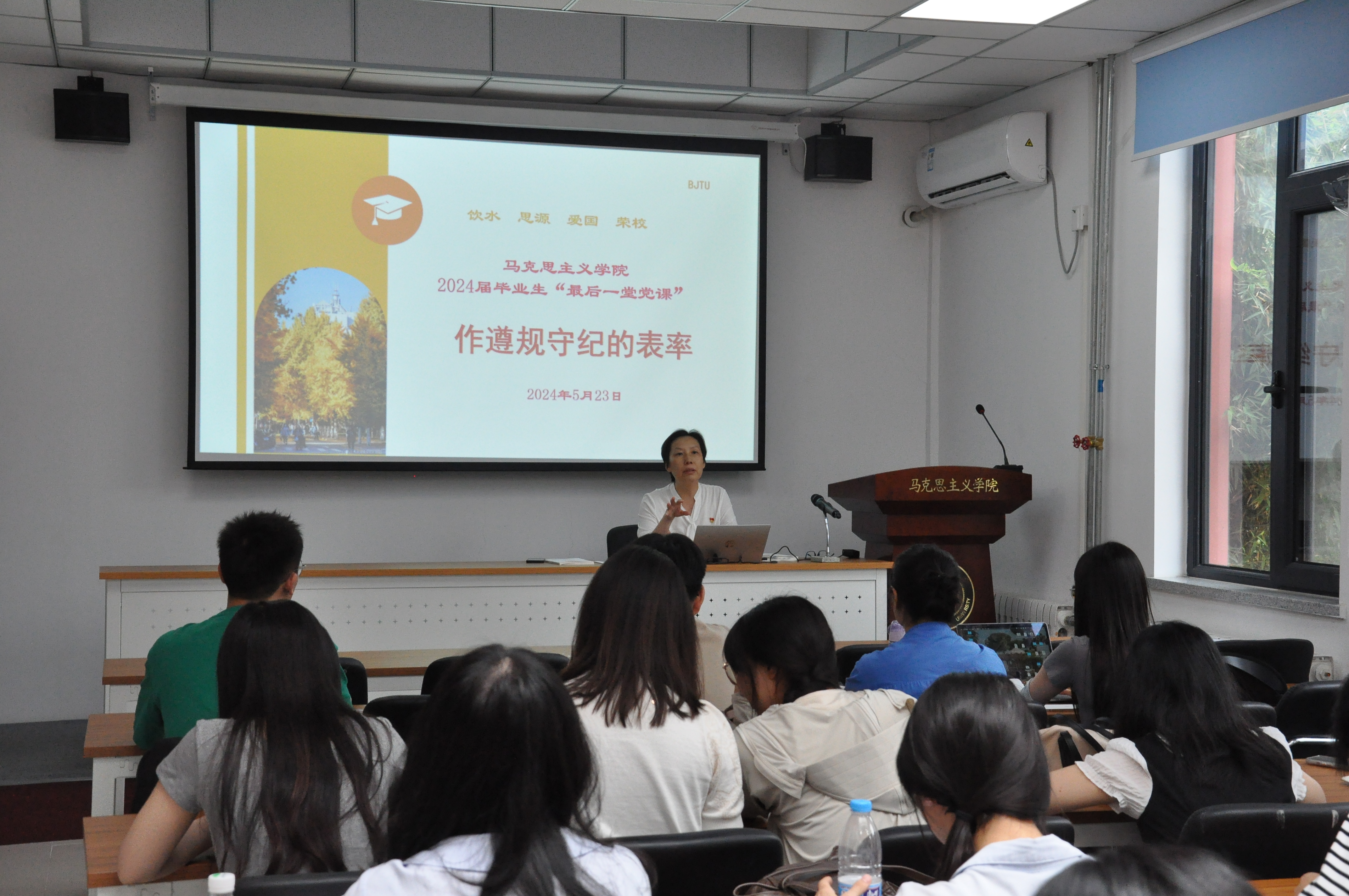 为进一步学习贯彻新修订《中国共产党纪律处分条例》,加强毕业生党性教育,5月23日上午,学院党委书记孙冬梅为即将告别母校,踏上崭新人生旅程的毕业生党员讲授最后一堂党课,引导毕业生自觉将纪律规矩转化为政治自觉、思想自觉、行动自觉,推动党纪学习教育走深走实。