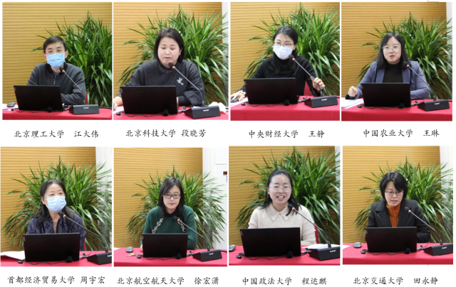 北京理工大学马克思主义中国化教研室主任江大伟、北京科技大学马克思主义学院党总支书记段晓芳、中央财经大学马克思主义学院王静副教授、中国农业大学马克思主义学院副院长王琳、首都经济贸易大学周宏宇教授、北京航空航天大学徐宏潇副教授、中国政法大学程运麒老师、北京交通大学马克思主义学院副院长田永静等八所北京市首批重点建设马克思主义学院代表,先后就各校开设“习近平新时代中国特色社会主义思想概论”课的学生数量、班级规模、学分学时、师资队伍、教学内容、讲授方式、实践教学、学生反响、考核评价、创新亮点等情况做了交流研讨,对课程建设中存在的师资短缺、无统编教材等困难提出了对策和建议。