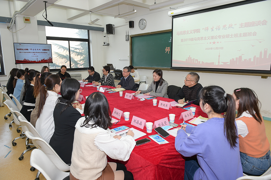 学校办、研工部、马克思主义学院负责同志出席座谈会,2019级马克思主义理论硕士班全体同学参加座谈会。