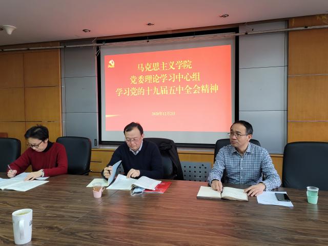 2020年12月2日上午,马克思主义学院党委召开中心组学习会议,深入学习领会党的十九届五中全会精神,进一步深化对会议公报、“十四五发展规划”和二零三五年远景目标的学习和领会。校党委副书记兼纪委书记郭海出席并全程参加了学习会。马克思主义学院党委书记孙冬梅主持会议,马克思主义学院院长高正礼、马克思主义学院副书记副院长李效东、马克思主义学院院长助理郑士鹏和学院党委委员参加学习。与会同志围绕习近平总书记在全会上的重要讲话精神和《中共中央关于制定国民经济和社会发展第十四个五年规划和二〇三五年远景目标的建议》(以下简称《建议》)进行集体研讨,深入交流学习体会。