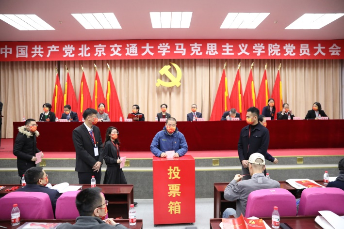 大会选举环节,全体与会党员投下庄严一票,选举产生马克思主义学院新一届党的委员会。
