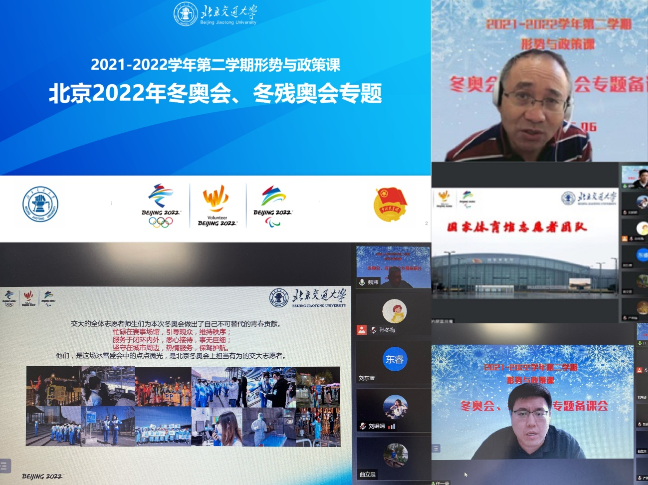 为深入学习贯彻习近平新时代中国特色社会主义思想,办好新时代大学生“形势与政策”课,不断提升我校“形势与政策”课教学质量,帮助学生正确认识新时代国内外形势,马克思主义学院近期陆续开展“形势与政策”课集体备课工作。2022年5月6日下午,校长王稼琼参加“北京2022年冬奥会、冬残奥会”专题教研组线上集体备课。