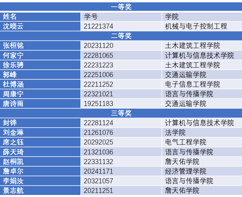 近日,2022年北京市大学生人文知识竞赛结果公布,我校有一位同学荣获北京市一等奖,另有7位同学获二等奖,8位同学获三等奖。我校这次共有23名同学参加北京市决赛,获奖率高达70%!北交大学子再次展示了“天地交而万物通也,上下交而其志同”的人文素养,文理兼通的强劲实力。
