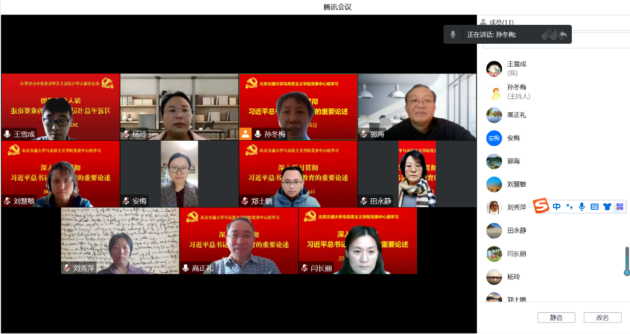 2022年12月16日上午,马克思主义学院党委通过腾讯会议围绕“深入贯彻学习习近平总书记关于教育的重要论述”开展专题学习研讨,校党委副书记、纪委书记郭海参会指导,党委宣传部副部长张安梅、纪委办公室干部杨玲线上参会。院党委书记孙冬梅主持学习,学院党委理论学习中心组全体成员参加。