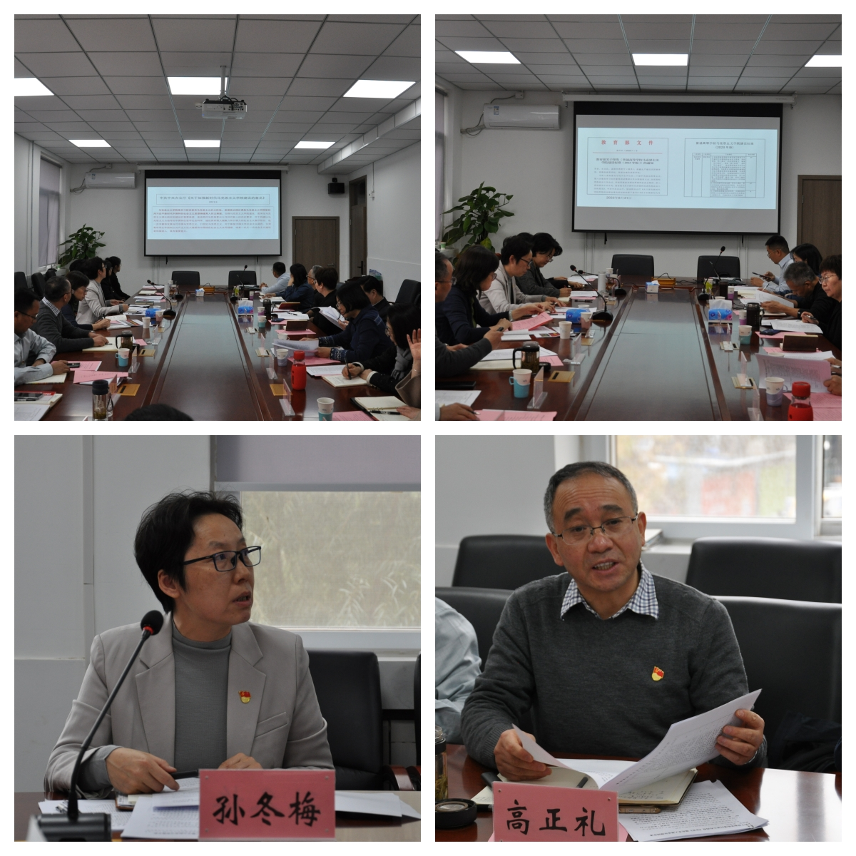 学院党委书记孙冬梅带领大家学习了十八大以来习近平总书记关于马克思主义学院及思政课建设的系列重要论述,希望大家进一步提高思想认识,要以总书记的系列重要讲话精神作为建好学院、办好思政课的根本遵循。院长高正礼对照《普通高等学校马克思主义学院建设标准(2023版)》,分析学院目前发展现状、存在问题和下一步的建设思路。班子成员田永静、闫长丽、郑士鹏分别结合分管工作分享了学习心得和工作思考。学院各学位点负责人韩振峰、何玉芳、李效东等分别从发挥学院优势特色、增强社会服务、进一步促进“两个结合”的角度提出建议,各教研室主部、党支部书记也发表了对学院工作的意见。
