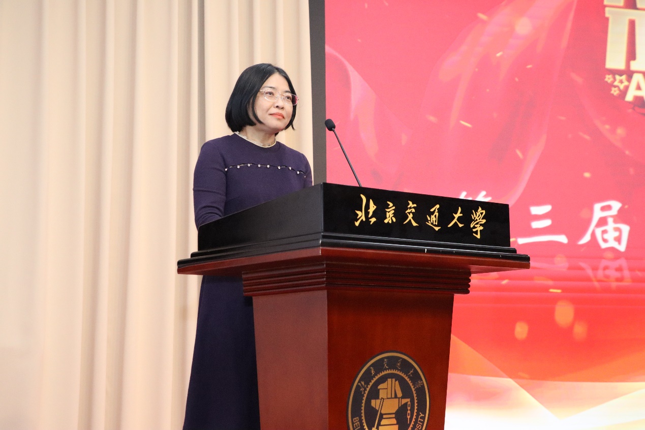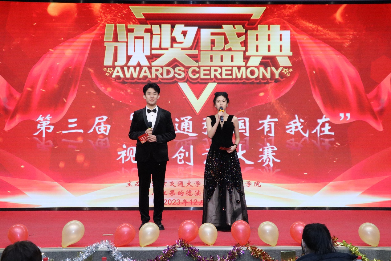 2023年12月21日下午,北京交通大学马克思主义学院举办的第三届“交通强国有我在”视频创意大赛颁奖典礼在第九教学楼中心报告厅顺利举行。北京交通大学党委宣传部副部长张安梅老师、本科生院副院长景云老师、马克思主义学院党委书记孙冬梅老师、院长高正礼老师、副书记、副院长田永静老师、副院长闫长丽老师、思想道德与法治教研室的老师们以及光明日报、中国青年报、中国交通报的媒体朋友们莅临颁奖典礼现场。