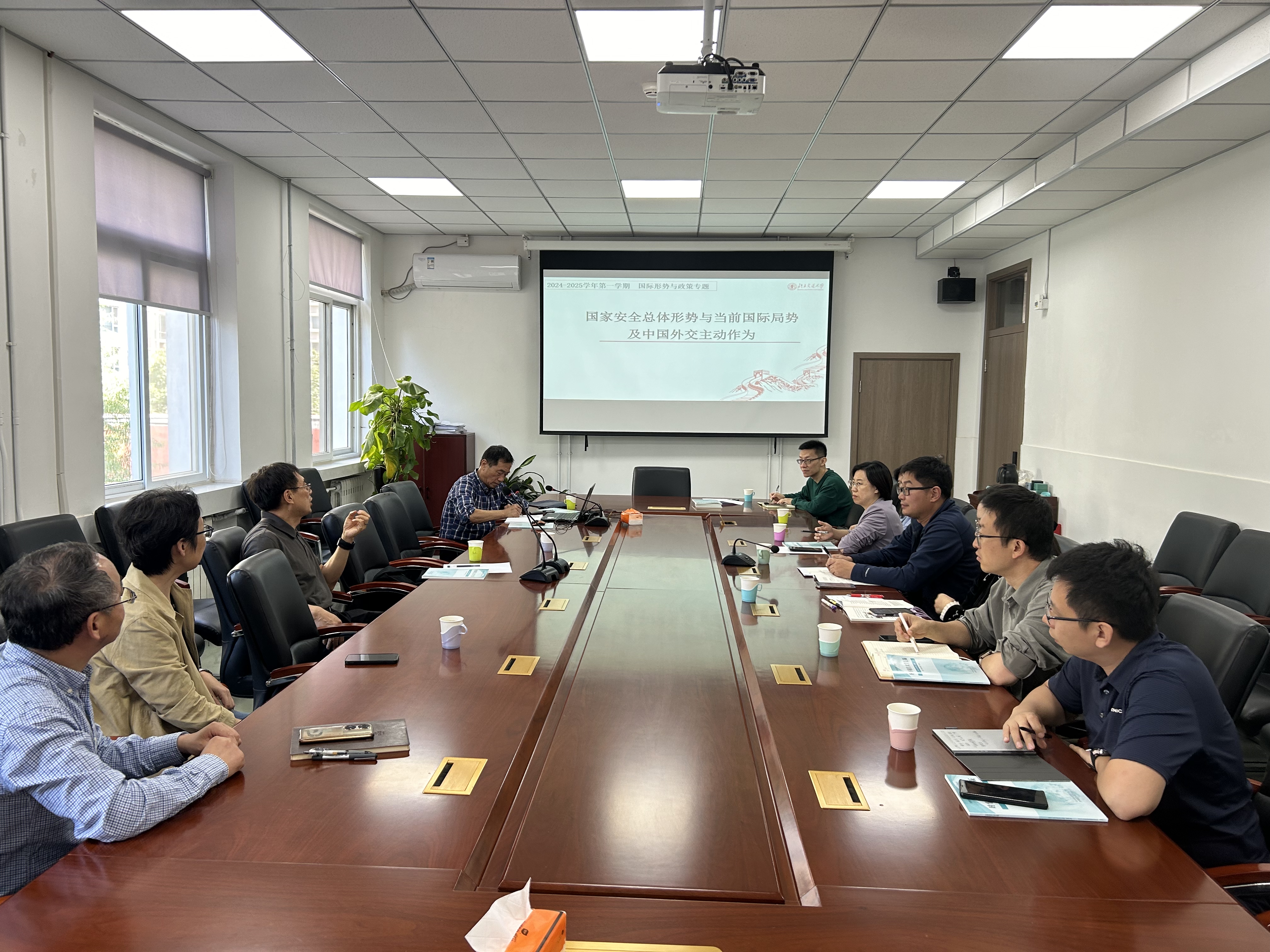 备课会上,各“形势与政策”课教研组指导教师围绕本专题的备课思路、教学内容和教学重点做教学示范,并就热点话题与焦点问题提出教学建议。各教研组组长结合教学演示进行说课点评,并对课程结构与主要内容进行全方位、多视角的梳理和阐释。在交流环节中,参会教师对本专题教学展示进行了充分的研讨。